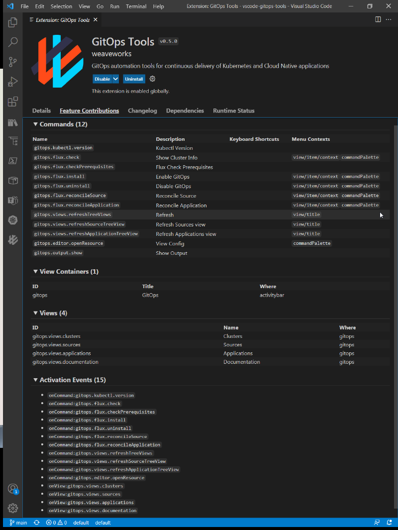 The extension was designed so that you always have access to the immediate tasks and events. Turning a manifest into a Kustomization or Source? Right-click on the YAML file. View repositories, clusters, sources, kustomizations, etc. - you see them at the first glance. View GitOps Output panel with CLI command traces for diagnostics, cluster and components versions, Flux controller logs, everything you might need to debug. Enable/disable GitOps cluster operations with just a click. Reconcile Sources and Workloads demand, and much more - links to most-needed docs included.